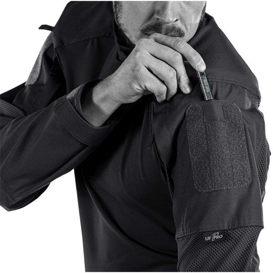 - Liberté de mouvement: Les soldats doivent être capables de se déplacer rapidement et librement, qu'ils rampent, courent ou se déplacent sur un terrain accidenté. La coupe ergonomique et les matériaux flexibles des chemises de combat UF PRO répondent à ces exigences de mouvement.
