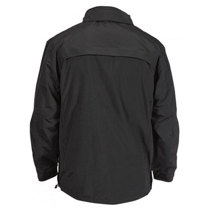 Cela permet d'accéder très rapidement à l'arme de service. Les poignets sont élastiques et réglables en largeur. Le système de ceinture de secours 5.11 permet le couplage avec une variété d'accessoires tels que des sacs et des supports. Ceux-ci peuvent facilement être fixés à la veste à l'aide de Velcro. Des panneaux d'identification peuvent être fixés au dos et sur le côté gauche de la poitrine. Il y a 2 poches zippées verticales sur la poitrine, qui sont imperméables. Il y a un clip dans la poche gauche pour que vous puissiez facilement transporter vos clés. Les zones les plus sollicitées sont spécialement renforcées. La production robuste et durable a été rendue possible grâce à 9 à 10 points sur une longueur de 2,54 cm. Les fermetures éclair sont très faciles à utiliser grâce aux boucles attachées, et les fermetures éclair YKK Aquaguard sont également étanches. Il y a une capuche dans le col de la veste, qui bloque parfaitement tous types de rafales de vent, de pluie et de neige grâce au cordon de serrage et au masque.