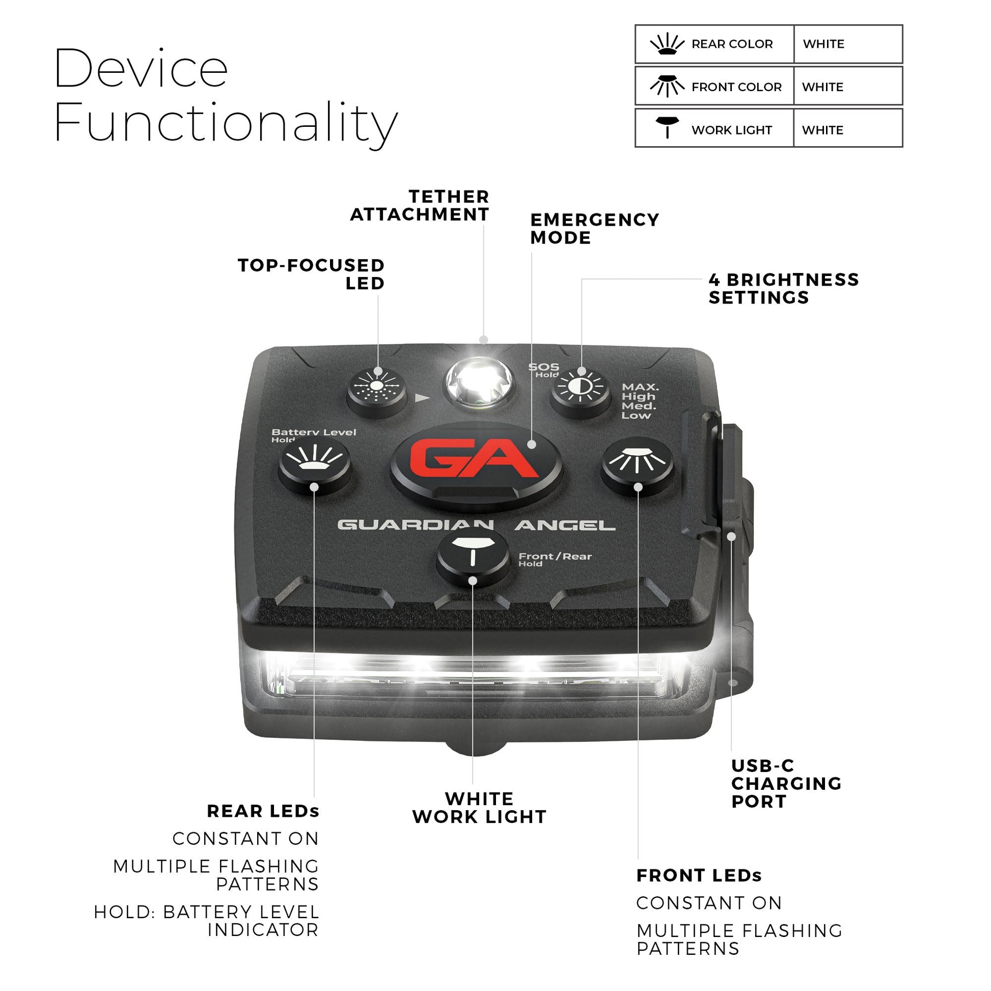 GUARDIAN ANGEL est une entreprise spécialisée dans les produits de sécurité personnelle et de visibilité. Ils proposent une gamme d'éclairages de sécurité à LED portables conçus pour augmenter la visibilité et la sécurité des personnes travaillant dans divers domaines professionnels, notamment la police, les services d'urgence, les ouvriers du bâtiment et les amateurs de plein air. La société a son siège social à Arlington, au Texas, aux États-Unis, et a été fondée en 2015. Les produits GUARDIAN ANGEL se caractérisent par leur durabilité et leur polyvalence, avec des fonctionnalités telles que plusieurs modes d'éclairage, des conceptions à clipser et un éclairage haute puissance pour améliorer la sécurité dans les environnements mal éclairés ou à haut risque.
