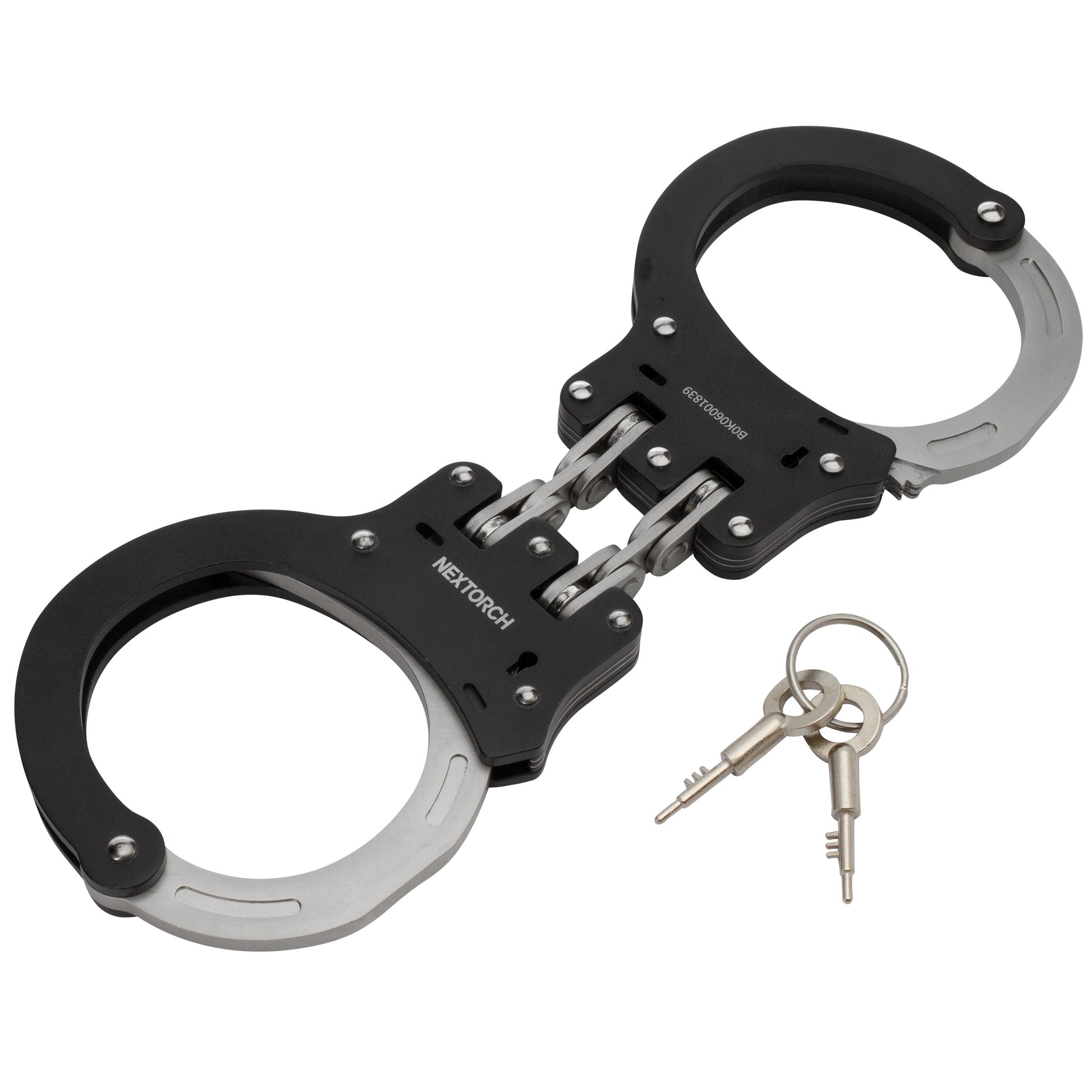 Les HC11 de Nextorch sont des menottes robustes et de haute sécurité avec une connexion articulaire solide . Contrairement aux menottes classiques, la double charnière ne peut pas pivoter complètement sur 360°, mais seulement jusqu'à 270°. Les verrous sur les côtés sont positionnés de manière à ce que le porteur ne puisse pas les atteindre.
