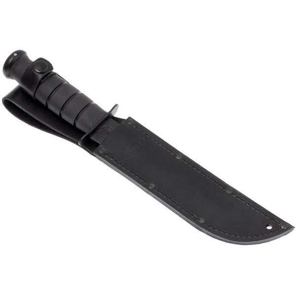 Voici la version noire du couteau de combat classique KA-BAR de l'armée américaine. Sa stabilité, son manche en cuir antidérapant, sa lame puissante en forme de Bowie et, bien sûr, son acier au carbone 1095 de haute qualité et de qualité constante font de ce couteau un classique. Un étui assorti est également inclus.