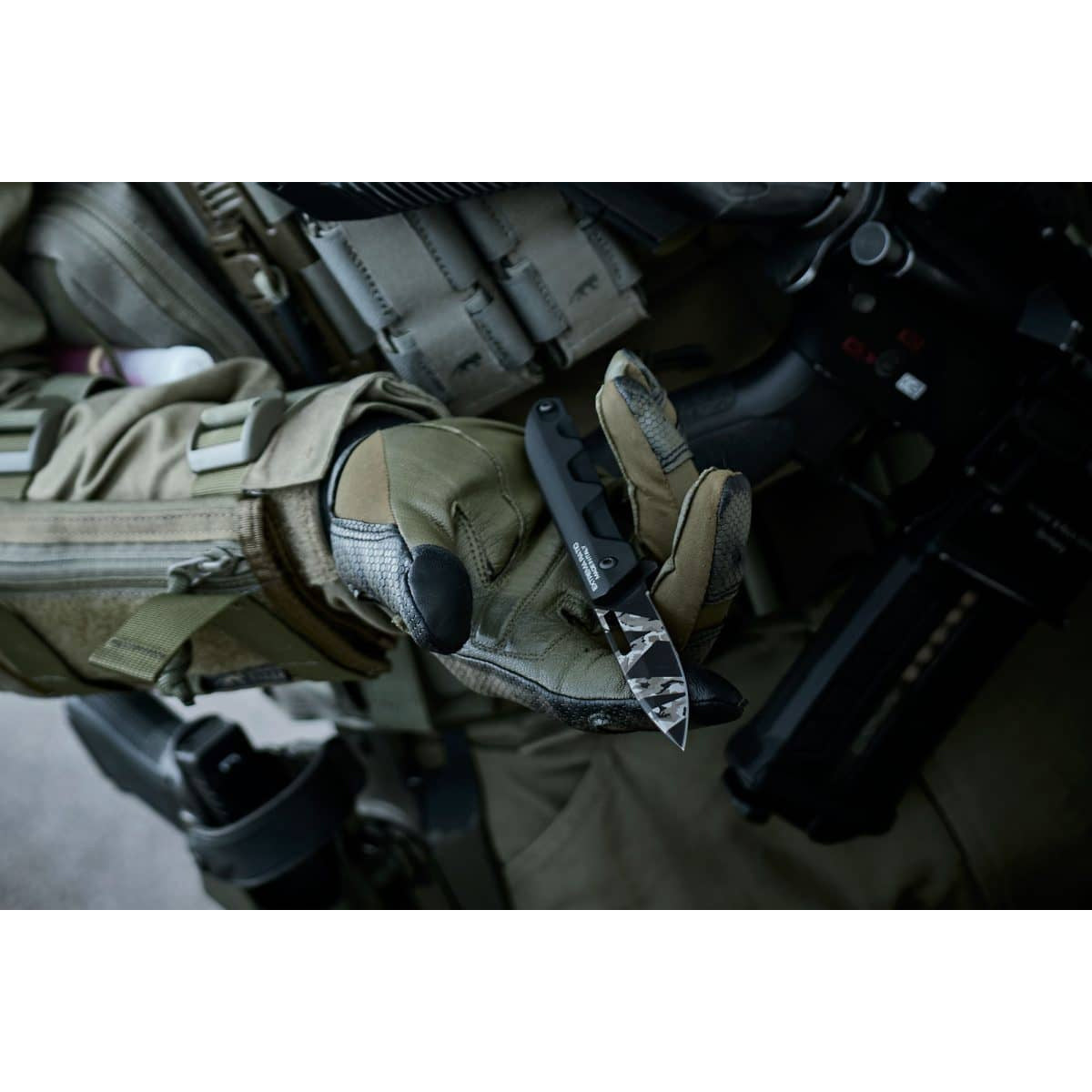🔹 Finition de la lame : Brunissage MIL-C-13924 – Camouflage Geotech