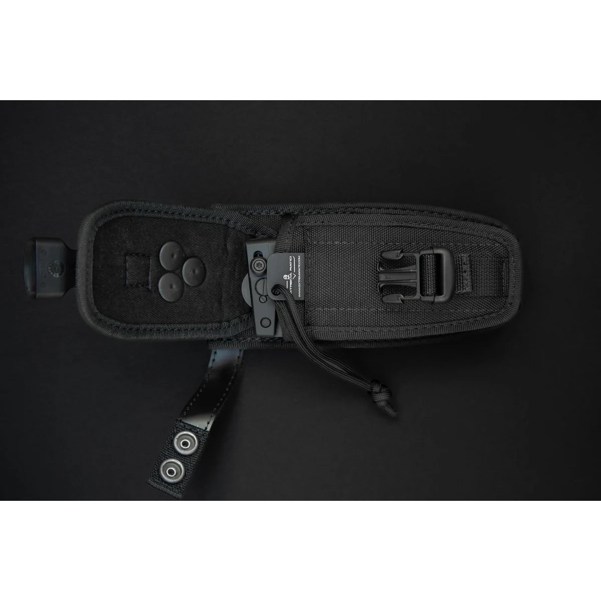 Le couteau s'ouvre et se ferme intentionnellement à deux mains afin de minimiser les risques de blessure ; le poids de la lame lui confère un effet guillotine. Autre atout majeur : son étui multifonctionnel . Doté d'un affûteur diamant intégré, il permet de porter le couteau ouvert (maintenu par un cordon et des clips) ou fermé dans une poche avant . Compatible MOLLE, l'étui se fixe aussi bien aux gilets tactiques qu'aux ceintures classiques.