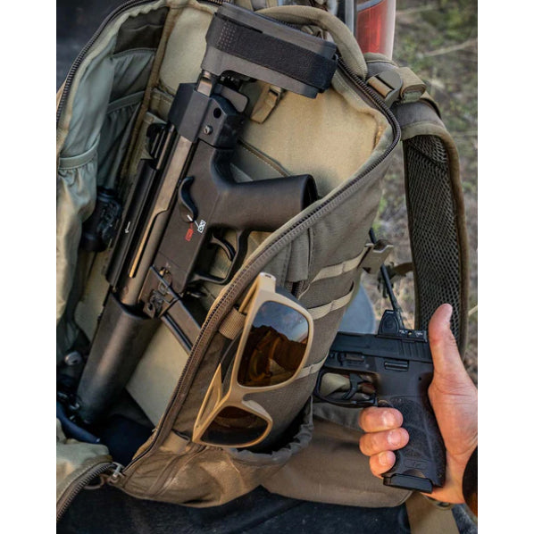 🔹 Volume : environ 29,3 litres 🔹 Poids : environ 1,63 kg Dimensions (H × L × P) : 52 × 30 × 20 cm 🔹 Matériau : Nylon de haute qualité, résistant à l'abrasion 🔹 Compartiment CCW : Accès double face avec fermeture magnétique 🔹 Compartiments intérieurs : compartiment pour ordinateur portable/tablette, compartiment pour documents, poches organiseur et pour magazines 🔹 Poches latérales : Deux compartiments élastiques pour bouteille d'eau + poche plate zippée 🔹 Système MOLLE : compatible MOLLE-10 avec accessoires à 3 rangées (60 % de gain de poids) 🔹 Système de portage : Harnais amovible au design ergonomique 🔹 Holster : Ambidextre, adapté à la plupart des armes de poing (y compris les armes à cadre complet)