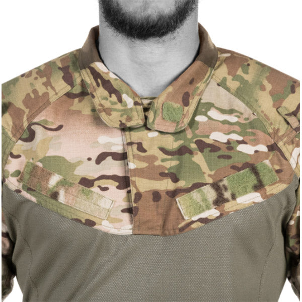 Les manches et le torse de cette chemise de combat sont fabriqués à partir d'un tissu ripstop qui ne fond pas et ne goutte pas. Le résultat est un vêtement léger, respirant et à séchage rapide.