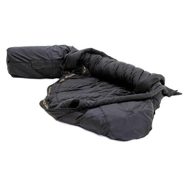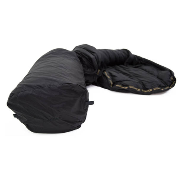 Questo sistema utilizza un secondo guscio esterno invertito realizzato in Shellproof Ultra idrorepellente e traspirante. Utilizzando un'apertura con cerniera corrispondente, questo strato può essere semplicemente girato verso l'esterno per asciugarlo. I cristalli di ghiaccio o le gocce d'acqua che si sono formati tra gli strati possono essere facilmente scrollati di dosso. Per ottenere un'asciugatura più rapida dell'umidità residua della condensa, la fodera interna del sacco a pelo è realizzata in Shelltex Ultra resistente alla piuma ma estremamente traspirante. Lo strato d'aria aggiuntivo tra i gusci esterni aumenta la capacità di accumulo del calore e raggiunge così un sensazionale rapporto calore-peso.