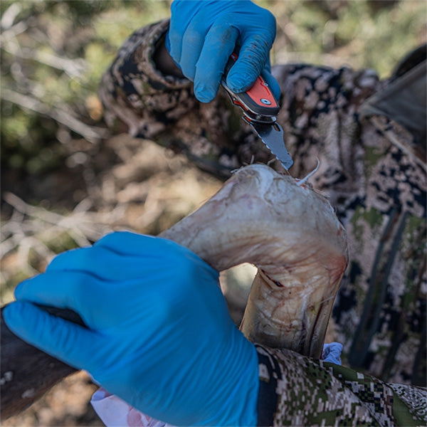 Il coltello è stato sviluppato insieme al noto cacciatore Randy Newberg. DTS sta per Dual Tool System e descrive un coltello con due lame. Oltre alla grande lama primaria in acciaio 440C, la DTS offre una seconda lama seghettata in D2. Ciò semplifica l'esecuzione di tagli difficili come l'apertura del soffitto, il taglio di tendini o il lavoro in punti difficili da raggiungere. I manici ergonomici in nylon garantiscono una presa sicura durante il lavoro e la colorazione accattivante rende il coltello facile da trovare sul campo. È inclusa anche la fondina da cintura.