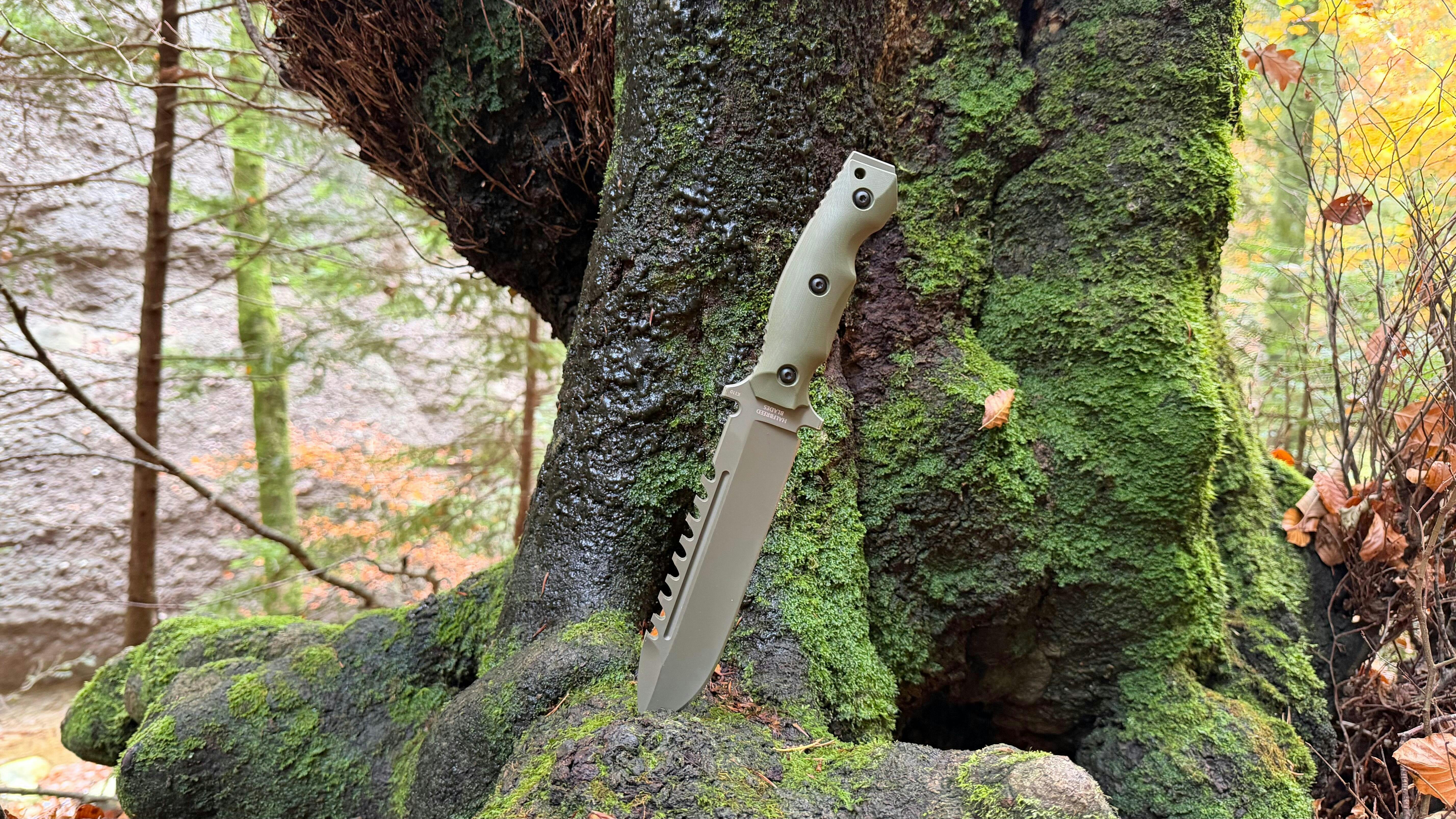 Il coltello da sopravvivenza Large di Halfbreed Blades è un coltello tattico e da sopravvivenza versatile ed estremamente resistente, pensato per operatori moderni, appassionati di outdoor e veri appassionati di sopravvivenza. Realizzato in Böhler K110 (D2) da 7 mm di spessore, combina una lama a punta di lancia modificata con dorso seghettato, sguscio per ottimizzare il peso, rivestimento in PTFE e punti di ancoraggio davanti al paramano: ideale per tagliare, sminuzzare, segare, fare leva, intagliare, forare, scuoiare, scavare e come lancia improvvisata.