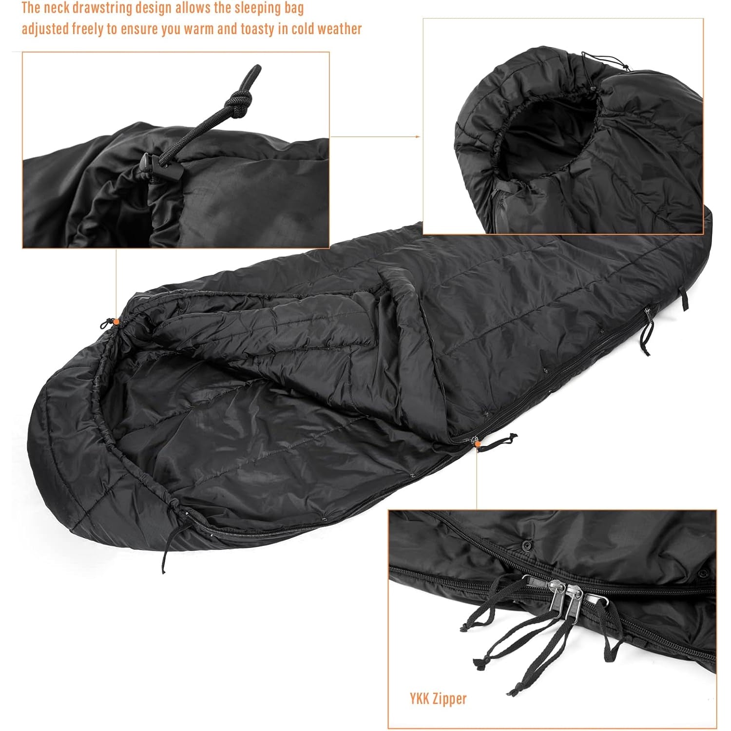 Sacco a pelo originale dell'esercito americano Sleeping Bag Intermediate Cold, lunghezza extra lunga, nero