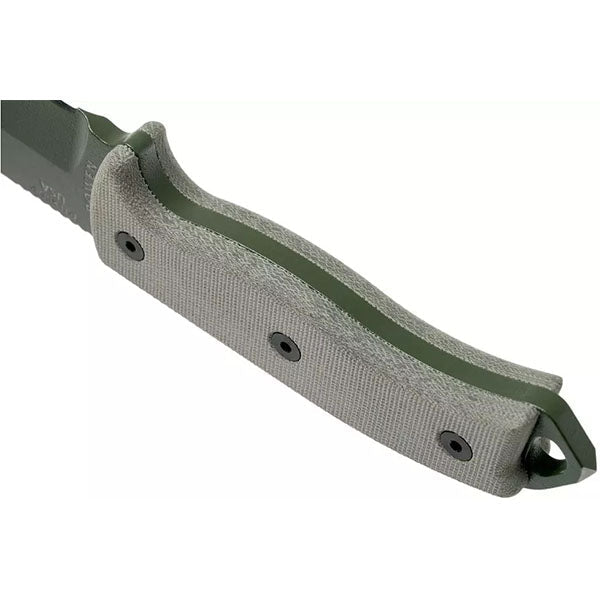 Das MODEL 5 Messer zeichnet sich durch seine hochwertige Konstruktion und seine scharfe Klinge aus. Die Klinge besteht aus erstklassigem 1095-Kohlenstoffstahl und hat eine Länge von 13,2 cm. Sie bietet eine aussergewöhnliche Schärfe, Härte und Widerstandsfähigkeit gegenüber Abnutzung und Korrosion. Der Stahl kann leicht nachgeschärft werden und behält seine Schneidfähigkeit auch unter anspruchsvollen Bedingungen bei. Mit einer Gesamtlänge von 27,5 cm und einem Gewicht von 435 Gramm ist dieses Messer sehr solide und gut ausbalanciert. Der ergonomisch gestaltete Griff besteht aus strapazierfähigem Micarta und bietet eine sichere und komfortable Handhabung, selbst unter widrigen Bedingungen.