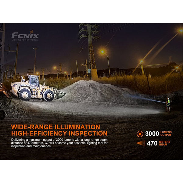 Die neue C7 ist eine leistungsstarke, wiederaufladbare Taschenlampe für Arbeitseinsätzte oder Outdooraktivitäten. Die Fenix C7 verfügt über USB-Typ-C-Ladung mit dem mitgelieferten 5'000mAh wiederaufladbaren Li-Ionen-Akku. Mit einer Leistung von bis zu 3'000 Lumen im Turbomodus wirft die Taschenlampe ihren Strahl bis zu 470 Meter weit, und die Laufzeit erreicht 68 Stunden, wenn im Eco-Modus verwendet wird.