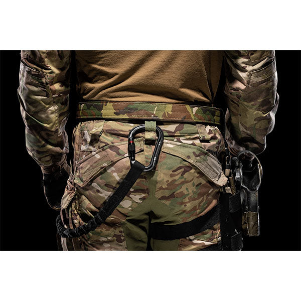 Das Verschlusssystem ist mit einer mattschwarzen COBRA® D-Ring-Schnalle von AustriAlpin ausgestattet, die eine Bruchlast von 18 kN (1835 kgf) aufweist. Diese Schnalle ist so konstruiert, dass ein versehentliches Öffnen verhindert wird. Das Sicherheitssystem erlaubt ein Öffnen nur im unbelasteten Zustand und nur durch Drücken der beiden Verschlussknöpfe. Im Innenteil ist die neue Velcro® Ultra-Matte in Naturfarbe eingenäht, die dank ihrer hervorragenden Haftkraft eine perfekte Verbindung bei der Verwendung als Aussengürtel garantiert. Dank des schlanken Profils des neuen Velcro®-Hakens, der weniger rau ist als gewohnt, kann der COBRA RANGE BELT auch allein als Hosengürtel getragen werden. Ein weiterer verstellbarer Velcro®-Klettverschluss ermöglicht die Anpassung des COBRA RANGE BELT an Kleidungsstücke, die in der Hose getragen werden.