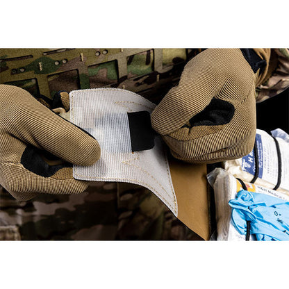 Die CHIRON MINI IFAK von FROG.PRO wurde als Antwort auf die Nachfrage von SF-Operateuren nach einer schnell ausziehbaren Mini IFAK entwickelt, die am besten funktioniert, wenn sie im Lendenbereich des Kampfgürtels getragen wird. Bei diesem Projekt musste FROG.PRO alles daransetzen, die Dinge einfach und effektiv zu halten. Das Ergebnis ist ein Design, welches es ermöglicht, die medizinische Ausrüstung im Notfall schnell und einfach zu erreichen. Du greifst einfach den ITW Nexus® D-Ring und nimmst den Einsatz heraus, der sich dann entfaltet und den Inhalt zeigt.