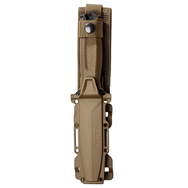 Das Gerber Strongarm Messer mit glatter Klinge ist dank Full-Tang Konstruktion sehr widerstandsfähig und liegt mit gummiertem Griff mit Diamant-Textur sicher und ausgewogen in der Hand. Die glatte 12.2 cm Drop-Point Klinge eignet sich für alle Einsätze gleichermassen. Der verwendete 420HC Stahl sorgt dafür, dass die Klinge für lange Zeit scharf bleibt und nicht so oft nachgeschliffen werden muss. Das Griffende dient ausserdem als Glas-Hammer und ist mit einem Befestigungsloch versehen. Die Kunststoffscheide ist im Lieferumfang enthalten.