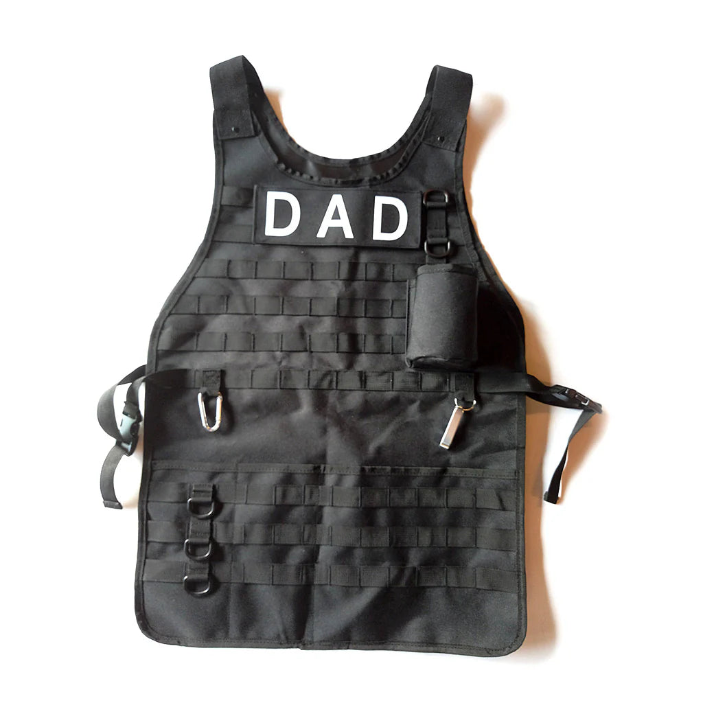 Mit der Grillschürze Tactical BBQ Apron von Caliber Gourmet bist du für die Mission am Grill bestens gerüstet! Diese Schürze bringt dir echte Profi-Ausrüstung und verwandelt jede Grill-Session in ein taktisches Erlebnis. Mit austauschbaren Klett-Namenspatches wie „Boss“, „Dad“, „Chef“ und „Mom“ kannst du deine Rolle klar definieren. Perfekt ausgestattet für jedes Grill-Abenteuer, macht diese Schürze dich zum Helden an der Feuerfront.