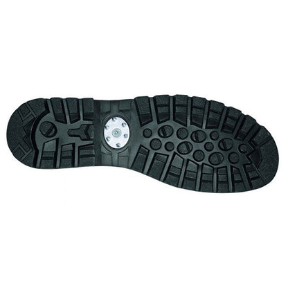 Stabile Gummi/PU Sohle mit robustem Geländeprofil, abriebfest und rutschsicher. Der PU Dämpfungskeil mit seinem geringen Gewicht, sorgt für Auftrittsdämpfung, und guten Abrollkomfort. Durch von Hand aufgezogenen Gummirandstreifen wird eine optimale Seitenstabilität erzielt. Das Sohlen-Modell ermöglicht die Befestigung von Steigeisen. Die Laufsohle ist hitze-, öl- und benzinbeständig und nicht kreidend. Gemäß DIN EN ISO 20345:2007