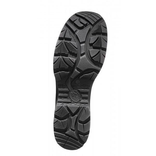 Gummi/PU Sohle mit robustem Straßen-/Geländeprofil, erhöhtem Abrollkomfort, abriebfest und rutschsicher – auch bei Kälte. Der PU-Dämpfungskeil mit seinem geringem Gewicht, sorgt für hervorragende Laufeigenschaften. Sehr gute Isolation gegen Kälte. Die Laufsohle ist hitze-, öl- und benzinbeständig und nicht kreidend.