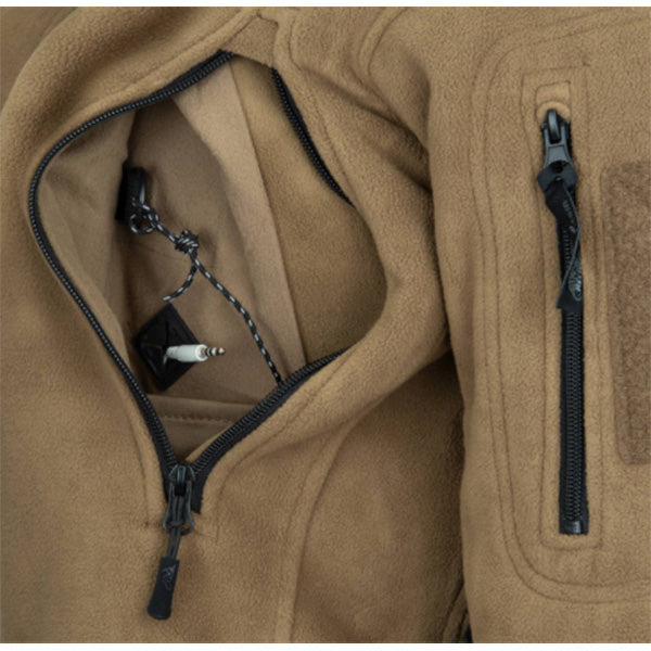 Die PATRIOT JACKET ist die modernste unserer Fleecejacken. Sie ist für den taktischen Einsatz auch bei extremem Wetter konzipiert. Die Jacke verfügt über eine verstellbare, kleine Kapuze mit Visier für zusätzlichen Schutz, sowie eine Reihe von Taschen für taktische Wesentliche. Die Brusttaschen sind mit Ösen und Organizern für kleinere Gegenstände ausgestattet.