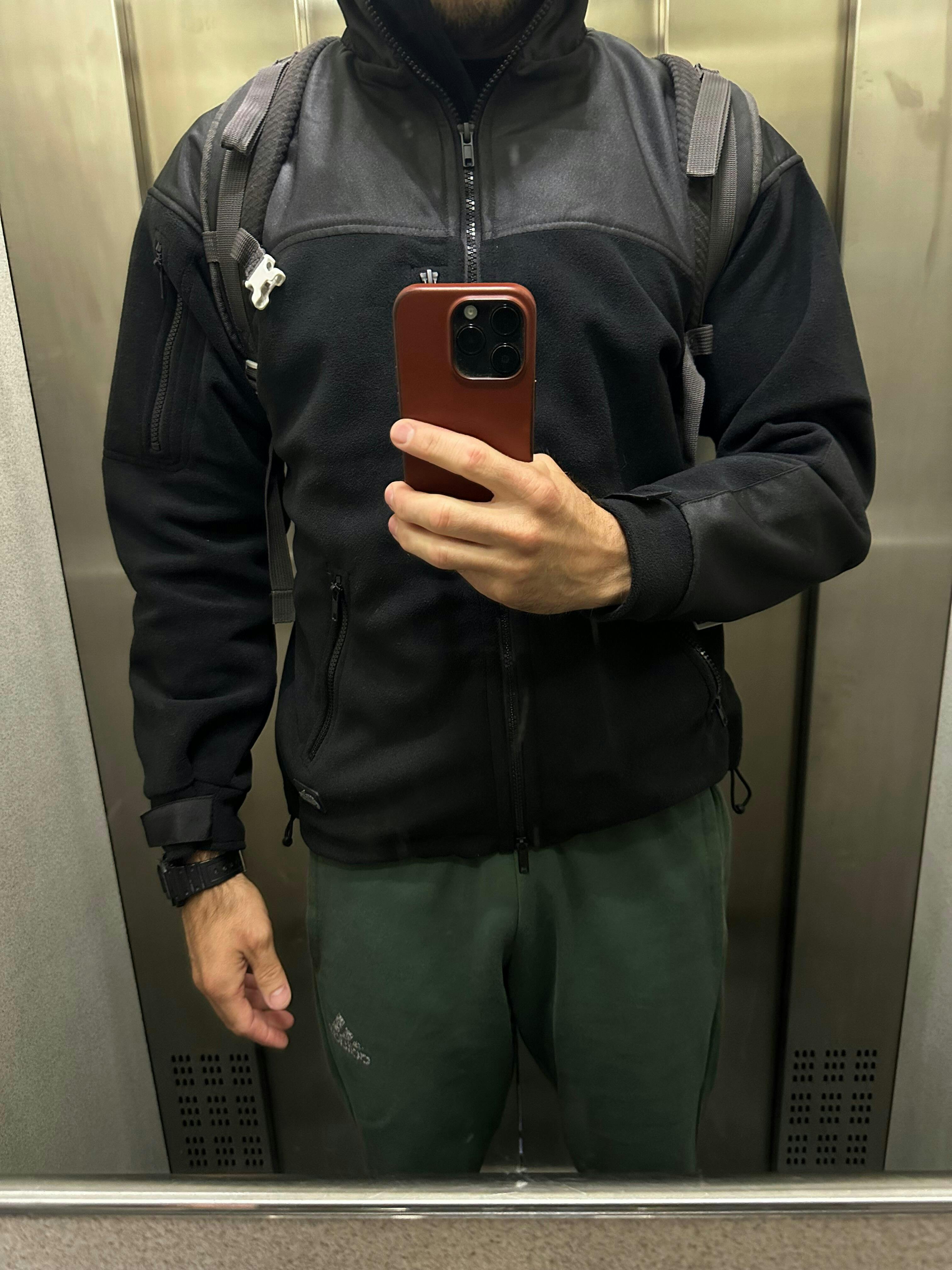 Die Jacke bietet guten Schutz gegn Wind und leichten Regen. Die Taschen bieten genug Platz.