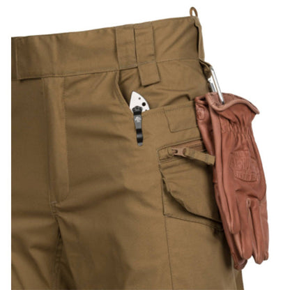 Die Hose hat insgesamt 8 Taschen. Grosse, geknöpfte Cargotaschen an den Oberschenkeln haben innenliegende Mesh-Einsätze, die für zusätzliche Belüftung sorgen, wenn die Taschen geöffnet sind. Die klassischen Hüfttaschen haben Verstärkungen an den Kanten, damit sie nicht so schnell durch Messerklemmen beschädigt werden können.