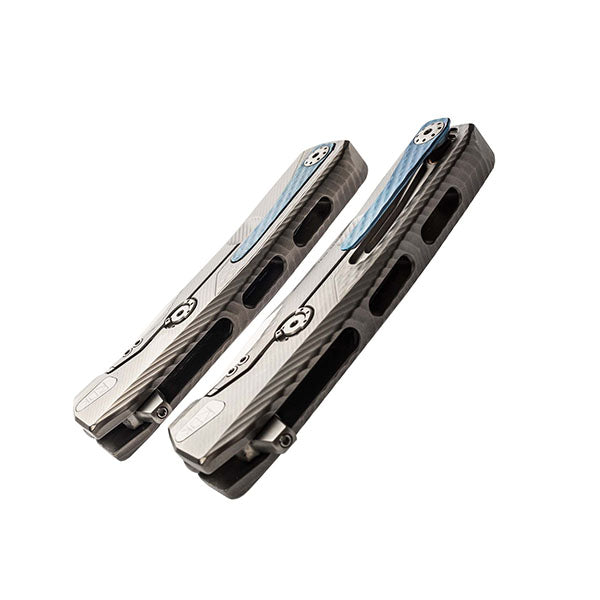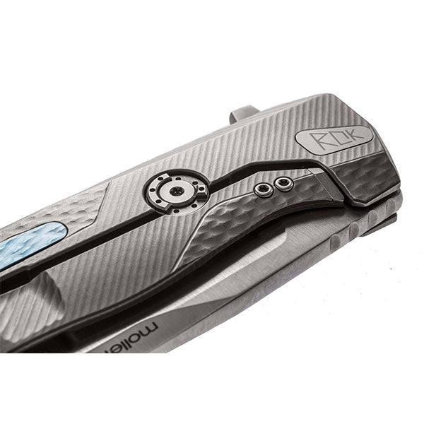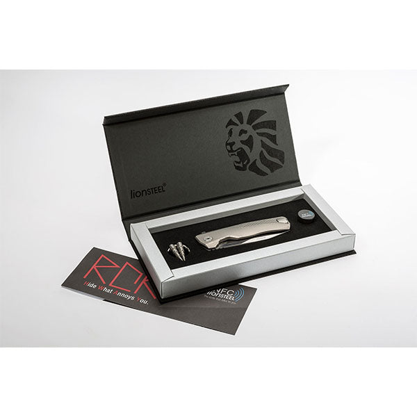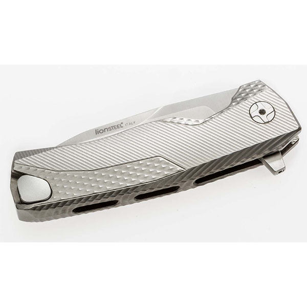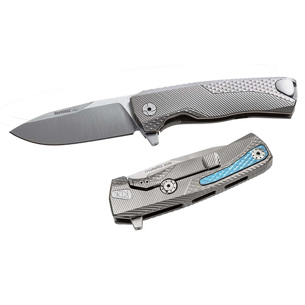 Das ROK Klappmesser von LionSTEEL kommt mit einer Klinge aus M390-Sinterstahl, Frame-Lock-Verriegelungssystem und Rotoblock-Sicherheitssystem. Das ROK Titanium Messer von LionSTEEL verfügt über einen aus einem einzigen Stück Titanium gefertigten Griff, der leicht und widerstandsfähig ist und nach der SOLID®-Messertechnologie geschmiedet wurde. Die Klinge des ROK Titanium ist in satinierter Ausführung erhältlich. Der blaue Clip aus Titanium ist mit einer exklusiven Technologie von HWAY.L herstellt, unter einem LionSTEEL-Patent, das es ermöglicht, ihn nur bei Bedarf herauszuziehen und ihn ansonsten im Griff zu belassen. Der Messerflipper aus M390-Sinterstahl kann mit dem mitgelieferten Spezialschlüssel entfernt werden. Dank des gehärteten Stahls am Ende der Arretierungsschiene besteht keine Gefahr, dass die Klinge den Schaft beschädigt.