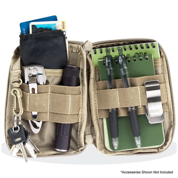 Maxpeditions Kleiner: Der Mini Pocket Organizer! Der Kleinste der 3er Pocket Organizier-Serie von MAXPEDITION. Das große Hauptfach läßt sich durch den über drei Seiten laufenden Reißverschluß vollständig öffnen und bietet Zugang zu den vielseitg nutzbaren internen Fächern. Den Mini Pocket Organizer können Sie einfach in Ihrer Tasche verstauen oder mittels der MOLLE / PALS Schlaufen an anderen Ausrüstungsgegenständen befestigen.