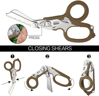 Die Multifunctional Emergency Schere ist ein unverzichtbarer Bestandteil jeder Notfallausrüstung. Ob im Erste-Hilfe-Set, Survival-Kit oder im Einsatzrucksack – mit diesem Werkzeug bist du auf alles vorbereitet.