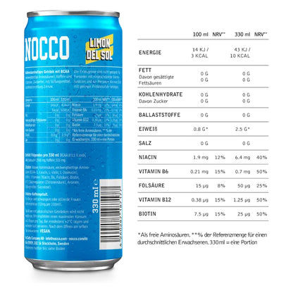 Erlebe mit NOCCO Limón Del Sol die pure Erfrischung eines mediterranen Sommertags – eingefangen in einer einzigen Dose. Der spritzige Zitronengeschmack mit prickelnder Kohlensäure sorgt für gute Laune und Energie, wann immer du sie brauchst. Ob beim Training, unterwegs oder einfach zwischendurch – diese vegane Performance-Drink-Alternative hebt nicht nur deinen Fokus, sondern auch deine Stimmung.
