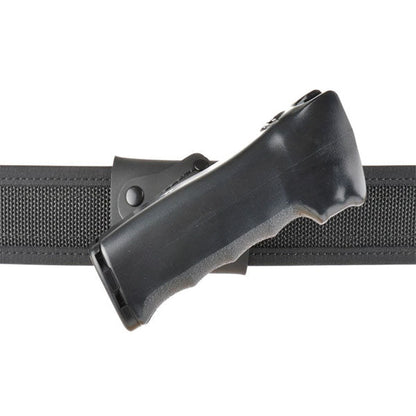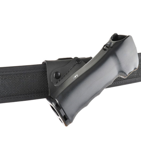 Der Pfefferspray-Halter erlaubt die beidseitige Trageweise (schräg) von Pfeffersprays für Gürtel bis zu einer Breite von 50mm. Aufgrund der Beschaffenheit des Trageclip und aus Gründen der Sicherheit vor Verlust ist ein etwas erhöhter Kraftaufwand beim Ziehen der Pfeffersprays aus dem Holster erforderlich.