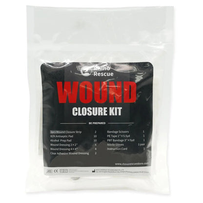 Das umfassende Wound Closure Kit von Rhino Rescue ist dein unverzichtbares Werkzeug zur effektiven Behandlung verschiedener Wundarten.