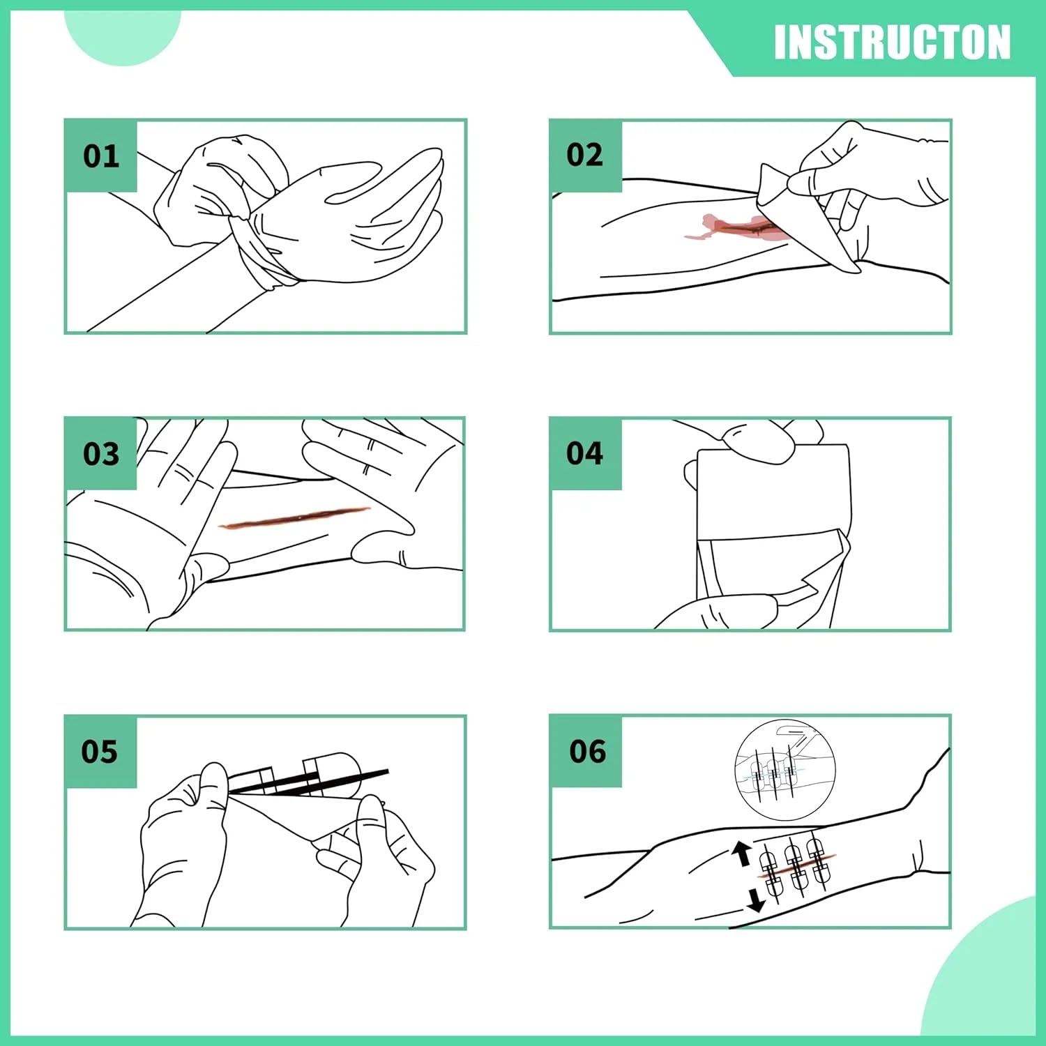 - 6 fortschrittliche Wundverschlussstreifen: Für eine sichere und effiziente Versorgung von Platzwunden, ohne dass Nähte erforderlich sind.