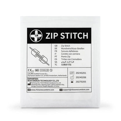 Die Zip Stitch Wundverschlussstreifen von Rhino Rescue sind ideal für die schnelle und effiziente Versorgung von kleinen bis mittleren Schnittwunden und bieten eine praktische Alternative zu traditionellen Nähten.