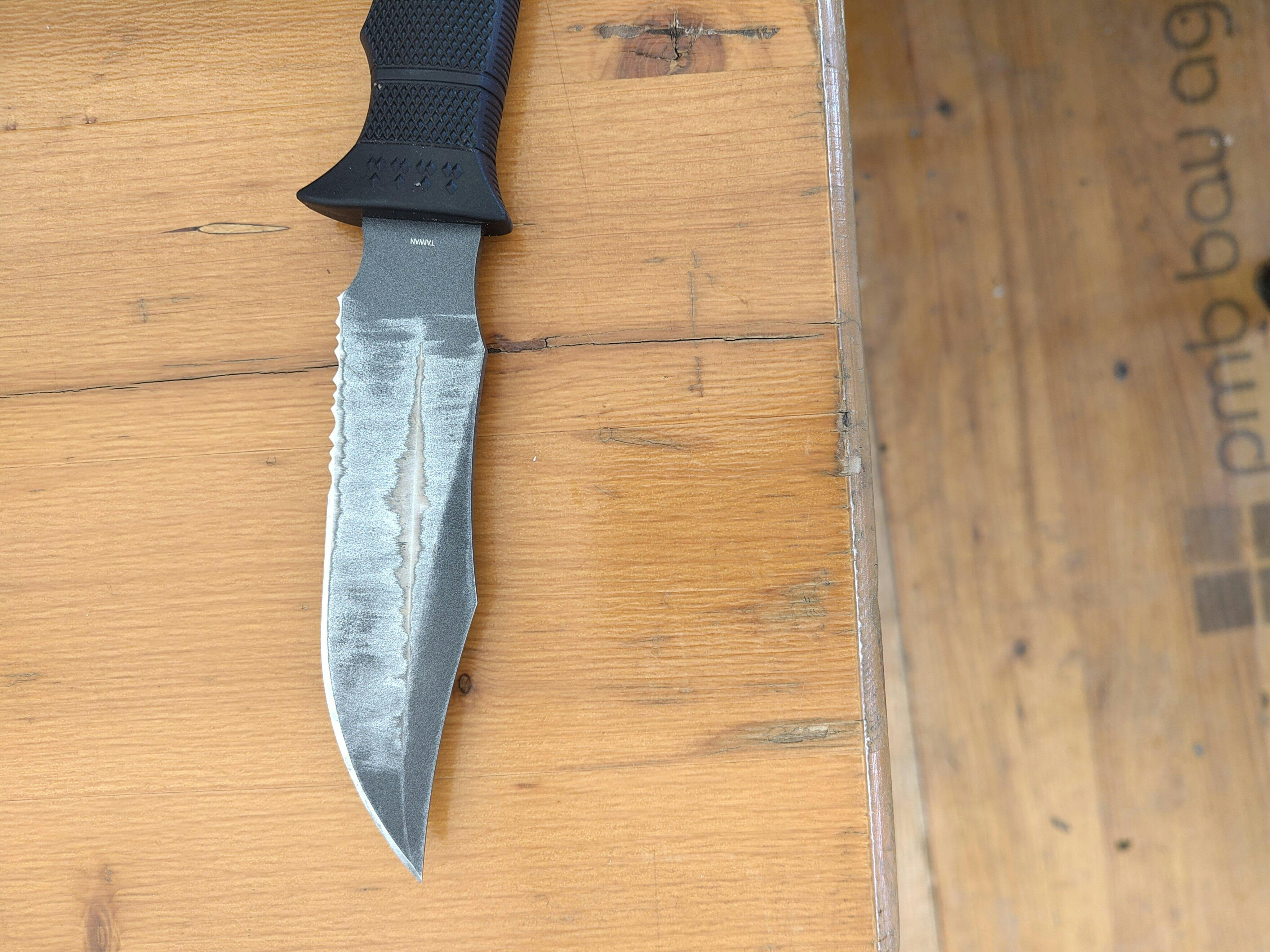 Outdoor Messer mit taktischen Einflüssen. Matt beschichdete Klinge um Licht-Reflexion zu vermeiden mit einem Teilwellenschliff. Griff aus glasfaserverstärktem Nylon, mit angedeuteter Parierstange. Bietet guten Halt, auch bei Nässe.