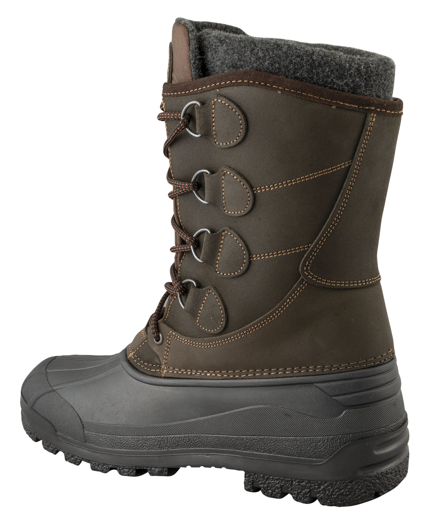 Ein besonderes Highlight ist der anpassbare Innenschuh. Während andere Stiefel einfache Schlupfschuhe nutzen, überzeugt dieser mit einer präzisen Passform und verstärktem Fersen- sowie Sohlenbereich. Das strapazierfähige Obermaterial kombiniert mit weichem Fleece-Innenfuttersorgt für Wärme und Komfort. Der Filzkragen am Schaft und ein Klettriemen über dem Schienbein ermöglichen eine individuelle Weitenregulierung.