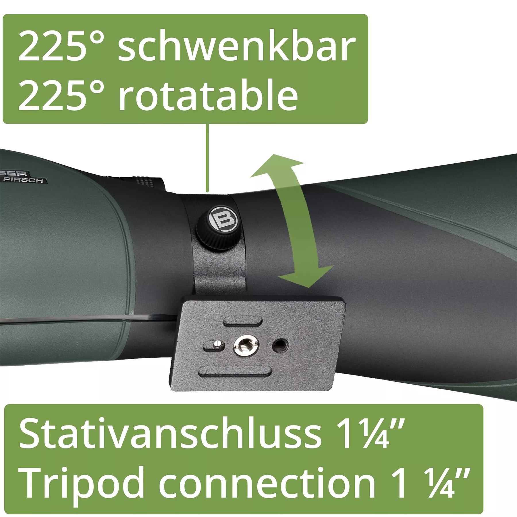 Mit dem stufenlosen 20- bis 60-fachen Zoom bist du jederzeit flexibel – ob auf dem Hochsitz, am Seeufer oder im Gebirge. Die hochwertige UR-Vergütung (Ultimate Reflection) sorgt für brillante Bilder mit hoher Lichtdurchlässigkeit – auch bei Dämmerung oder bewölktem Wetter.