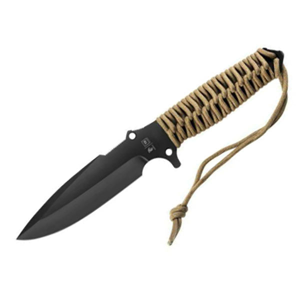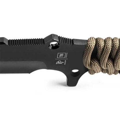 Das MARAUDEUR Einsatzmesser von TB-OUTDOOR wird in den Werkstätten in Thiers hergestellt. Dieses Messer verfügt über eine sehr robuste Klinge aus rostfreiem MOX®-Stahl mit aussergewöhnlichen Leistungsmerkmalen. Der "Abzug" unter dem Griff ermöglicht auch unter extremer Beanspruchung einen sicheren Griff mit maximalem Komfort. Die schwarze PVD-Beschichtung sorgt für eine sehr hohe Verschleiss- und Korrosionsbeständigkeit. Die schwarze Farbe trägt zur Reduzierung der visuellen Signatur bei. Die Ummantelung des Griffs aus Paracord 550® in Militärqualität (Reissfestigkeit min. 250 kg) sorgt für einen weichen, bequemen und sicheren Griff auch unter erschwerten Bedingungen. Eine massgefertigte Kydex-Scheide ist im Lieferumfang enthalten. Um diese bestmöglich an einem Gürtel (max. 6 cm Breite) zu befestigen, empfehlen wir den TB-OUTDOOR TAC-CLIP, der hier erhältlich ist.