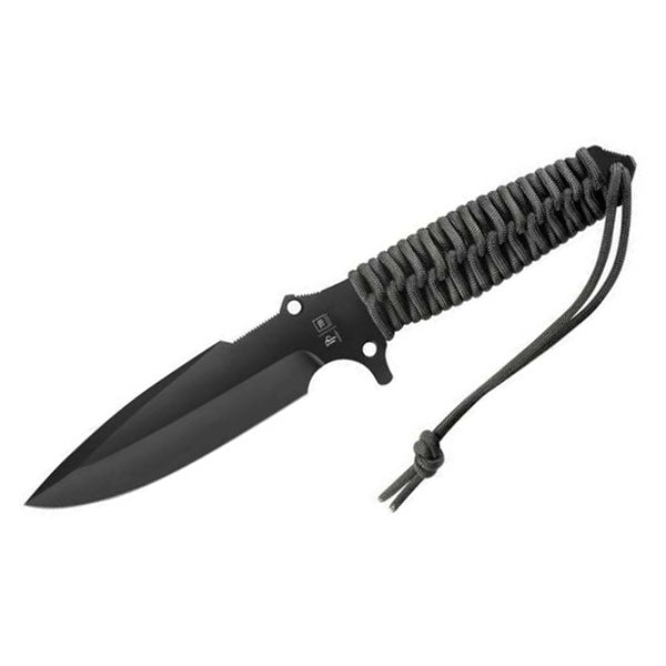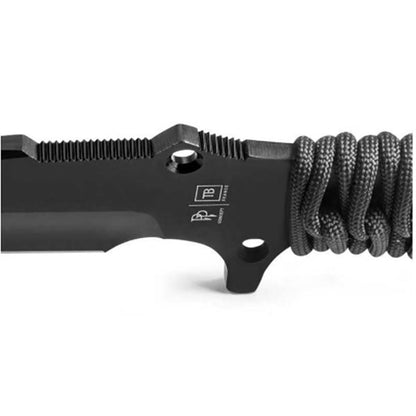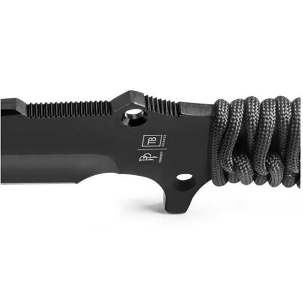 Das MARAUDEUR Einsatzmesser von TB-OUTDOOR wird in den Werkstätten in Thiers hergestellt. Dieses Messer verfügt über eine sehr robuste Klinge aus rostfreiem MOX®-Stahl mit aussergewöhnlichen Leistungsmerkmalen. Der "Abzug" unter dem Griff ermöglicht auch unter extremer Beanspruchung einen sicheren Griff mit maximalem Komfort. Die schwarze PVD-Beschichtung sorgt für eine sehr hohe Verschleiss- und Korrosionsbeständigkeit. Die schwarze Farbe trägt zur Reduzierung der visuellen Signatur bei. Die Ummantelung des Griffs aus Paracord 550® in Militärqualität (Reissfestigkeit min. 250 kg) sorgt für einen weichen, bequemen und sicheren Griff auch unter erschwerten Bedingungen. Eine massgefertigte Kydex-Scheide ist im Lieferumfang enthalten. Um diese bestmöglich an einem Gürtel (max. 6 cm Breite) zu befestigen, empfehlen wir den TB-OUTDOOR TAC-CLIP, der hier erhältlich ist.