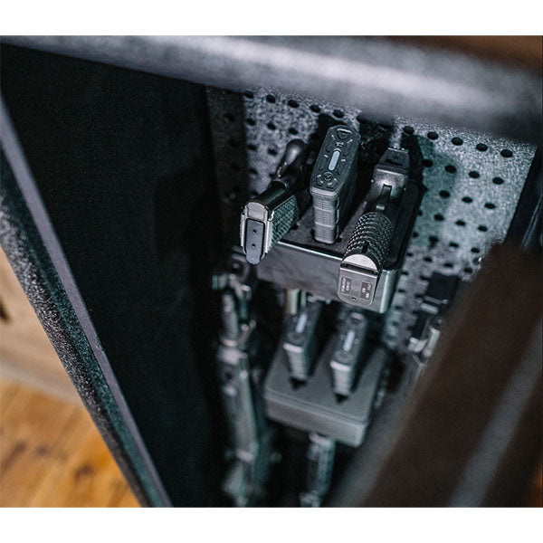 Das Three Pistol/AR Magazine Rack von VAULTEK ist aus hochdichtem Schaumstoff gefertigt und bietet Platz für 3 AR Magazine oder 3 Handfeuerwaffen. Das magnetische Konzept lässt sich bei Bedarf leicht neu positionieren. Für die optionale Türmontage ist die separat erhältliche Front Door Accessory Mount erforderlich. Das Three Pistol/AR Magazine Rack ist mit allen RS Safe Modellen kompatibel.