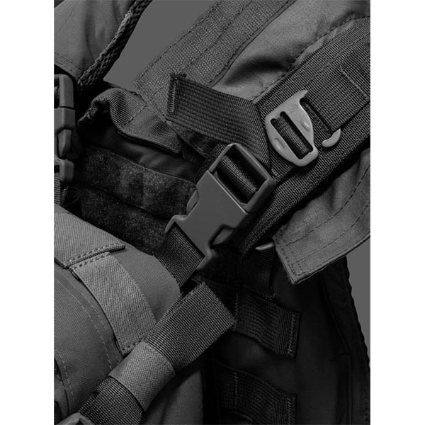 - MOLLE-System auf dem Rücken zum direkten Aufschlaufen auf eine Modularweste