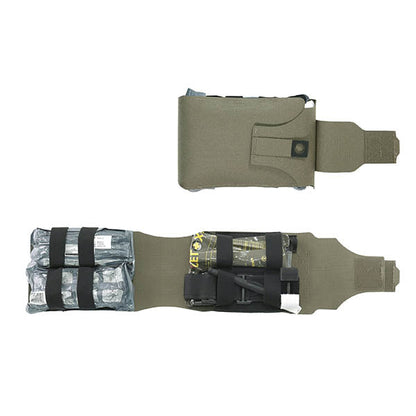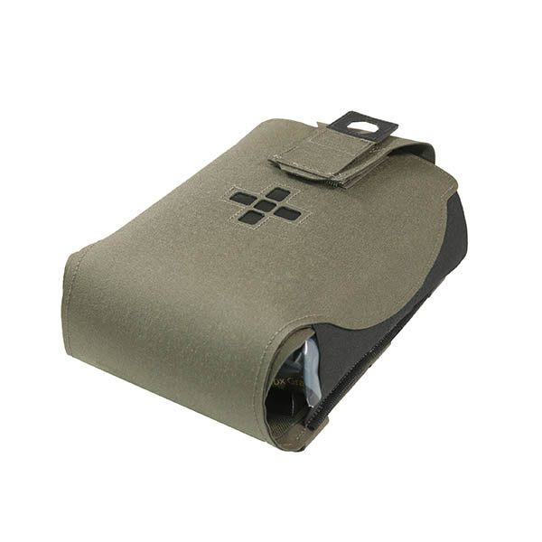 Alle Teile werden mit elastischen Schlaufen auf einem Panel befestigt und sind sicher in einer Außenhülle mit Laser Cut MOLLE-Befestigungssystem aufbewahrt. Bei Bedarf kann das mit dem IFAK mit schnellen und einfachen Zugriff mit einer Hand aus der Aussenhülle herausgezogen werden. Der Stoff ist resistent gegen Mehltau, UV-Licht, Wasser, Hitze und Kälte. Alle verwendeten Materialien haben die niedrigsten Infrarot-Werte (99,8%), werden nach US-Militärspezifikation mit hochmodernen Laserschneidmaschinen produziert.