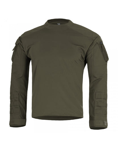 Das WOLF Combat Shirt von Pentagon ist für anspruchsvolle Einsätze gemacht und kombiniert innovative Materialien mit einem Design, das Komfort, Haltbarkeit und Funktionalität in den Vordergrund stellt. Die Ärmel bestehen aus robustem, atmungsaktivem Ripstop-Gewebe mit 2-Wege-Stretch, das dir maximale Flexibilität und Strapazierfähigkeit in intensiven Situationen bietet. Der Torso ist aus abriebfestem Strick gefertigt, während der untere Bereich mit einer Anti-Geruchs-Technologie behandelt wurde.